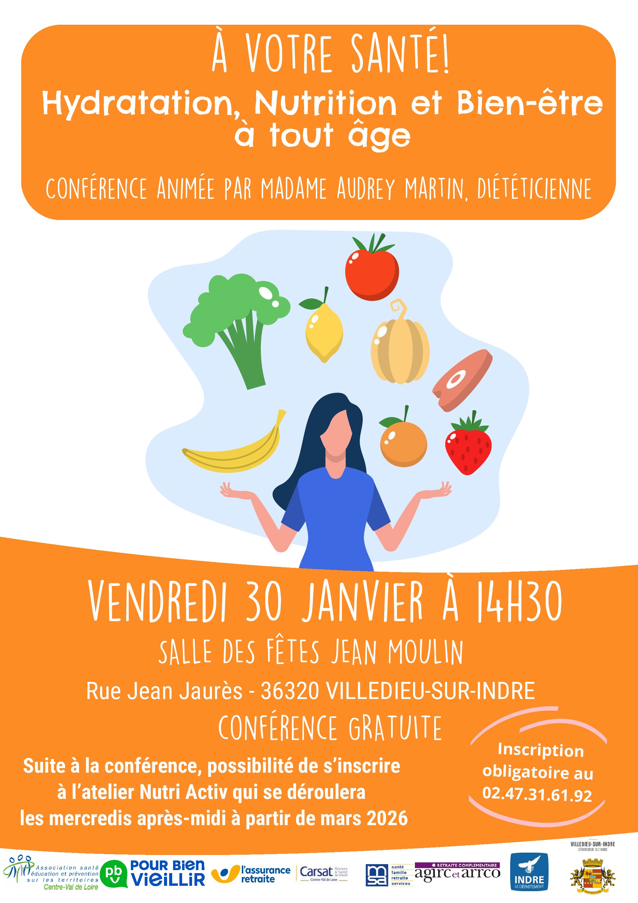 Conférence « Hydratation, Nutrition et Bien-être à tout âge. » à Villedieu sur Indre (36)